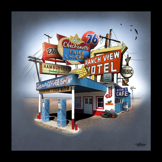 Surreal Vintage Americana. All prints use top-end paper & ink: Smooth cotton/alpha-cellulose blend paper with a bright white matte finish, 230 GSM. Archival inks.